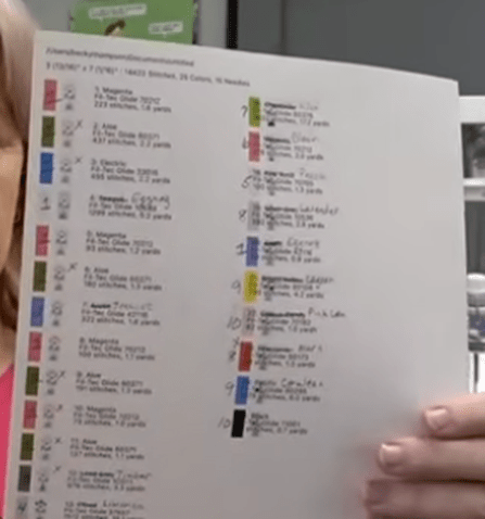 She highlights the importance of a color stop printout to plan your thread changes, especially when a design has more colors than your machine has needles (7:56). For that she uses the Embrilliance Software.